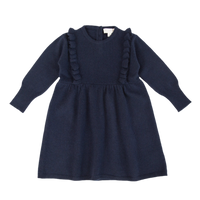 Mädchen tragen graue Strickjacken, Strickmützen in rosa und dunkelblau mit grauer Schleife am Saum von PAPA LOBSTER