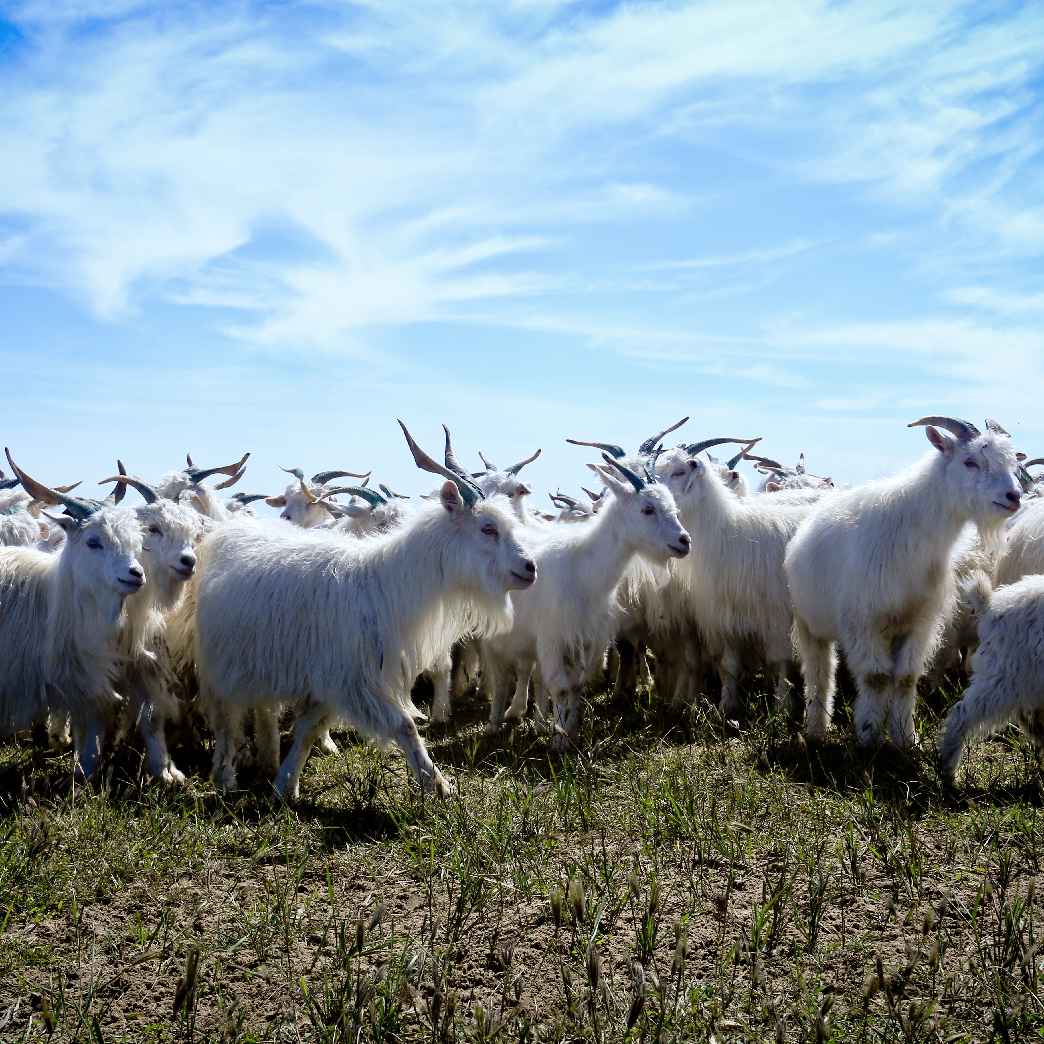 Our cashmere comes from free-range and species-appropriate goat herds from Inner Mongolia. Due to extreme temperature fluctuations on the Mongolian high plateau, cashmere goats develop their incomparably soft, supple undercoat, which naturally regulates their body climate. Our goat farmers do not shear the hair, but comb it out on each individual animal. This is what makes cashmere fiber so exclusive. To give you a comparison: every year, our farmers can only produce around 150 grams of wool from an adult animal. For a women's cashmere sweater in size S, however, we need around 200 grams.