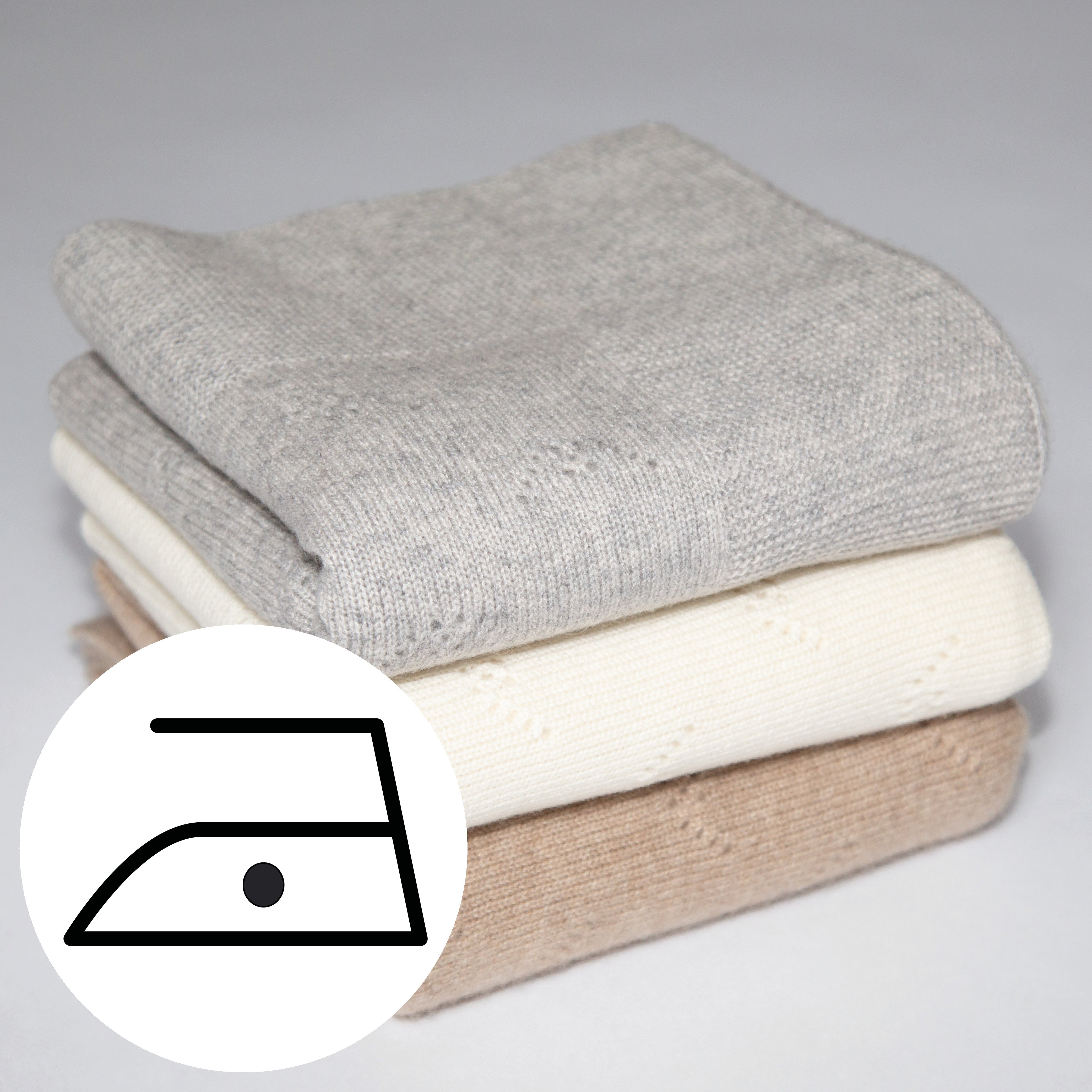 That's right, you can - and should - steam iron cashmere easily. Run a steam iron over the cashmere at a low temperature and without strong pressure. In this way, the cashmere pieces retain their shape and the cashmere fibers develop their typical fluffiness.