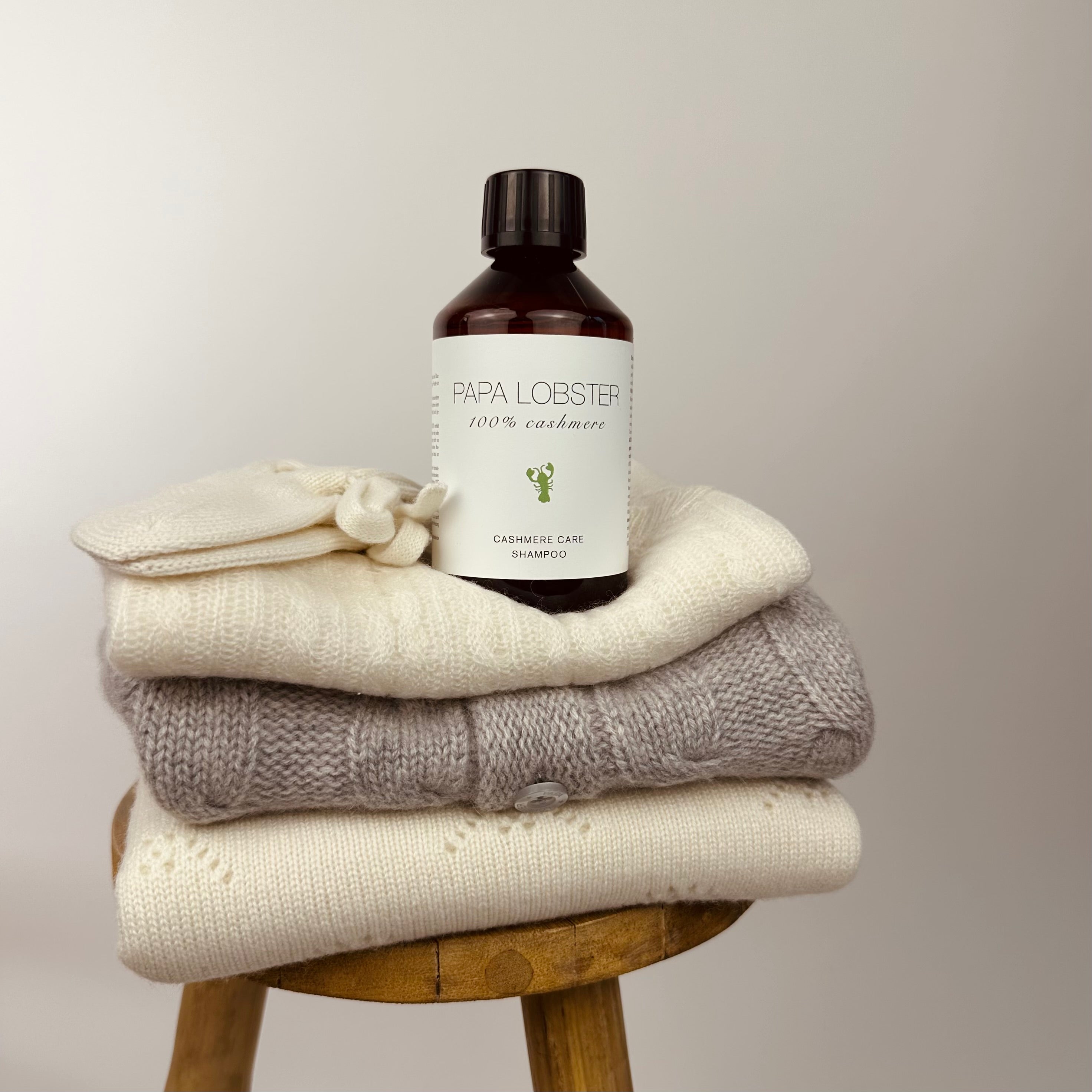 With our PAPA LOBSTER Cashmere Care Shampoo, your cashmere stays as soft and colorful as on the first day - without any complicated care rituals. The cashmere detergent was specially developed for high-quality natural fibers and is not only suitable for cashmere, but also for down, angora, mohair and alpaca. Its moisturizing formula provides every fibre with valuable lanolin, prevents pilling and maintains the luxurious, fluffy texture of your favourite pieces.